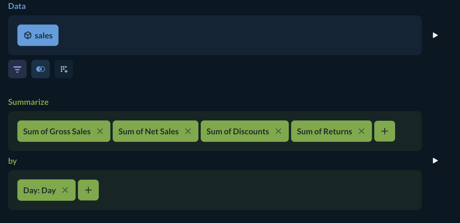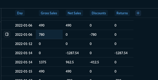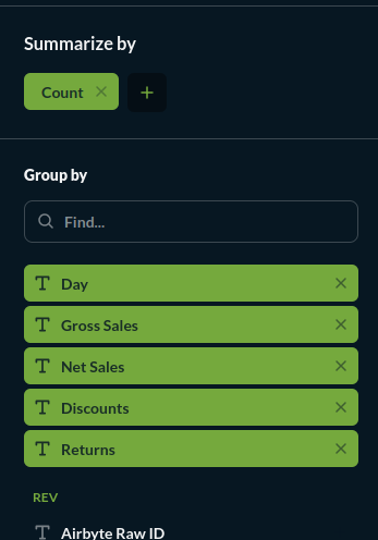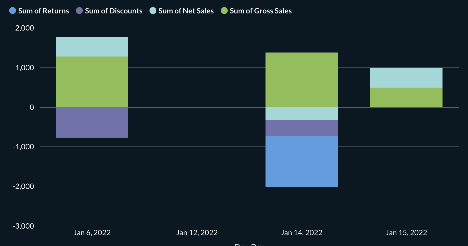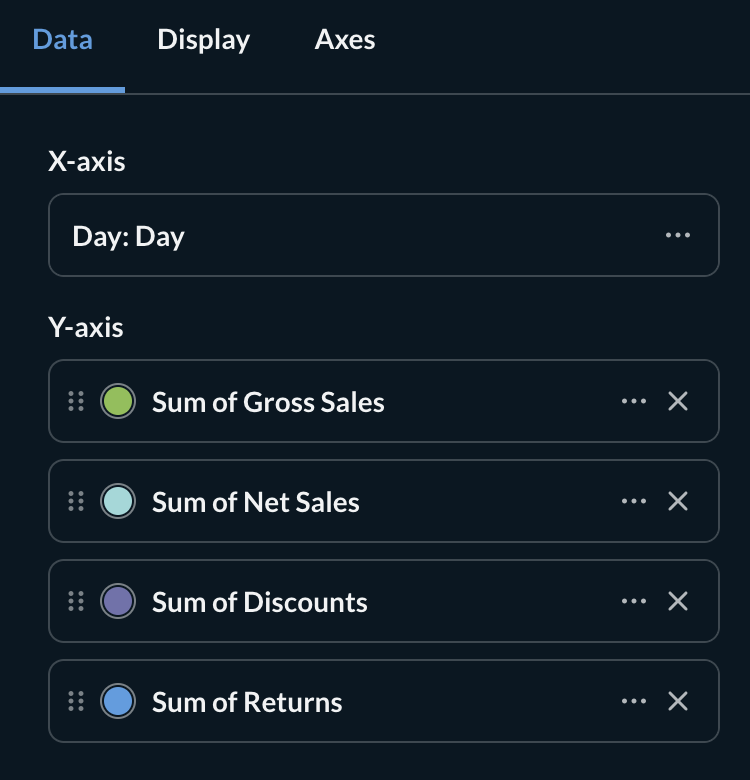 I would like to see those 4 amounts per day like this Create interactive charts | Metabase Learn