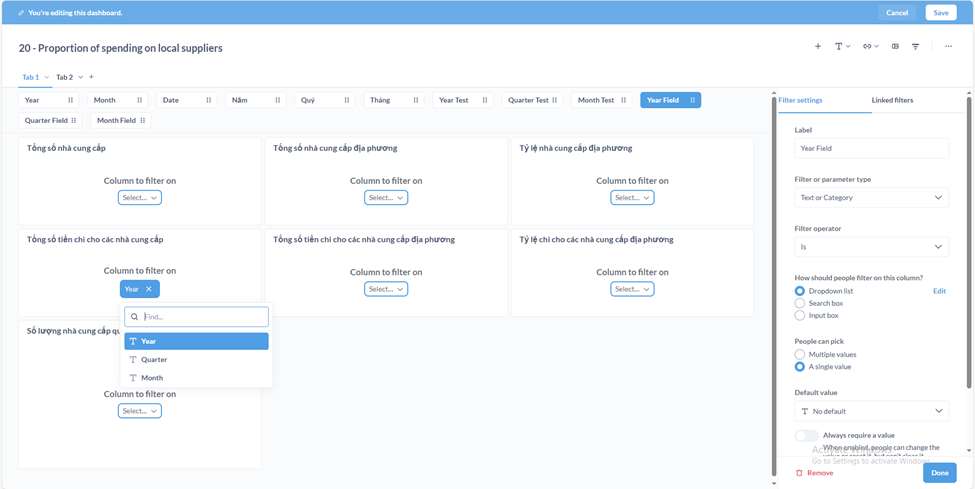 Linked the filters (Quarter dependent on Year, Month dependent on Quarter).