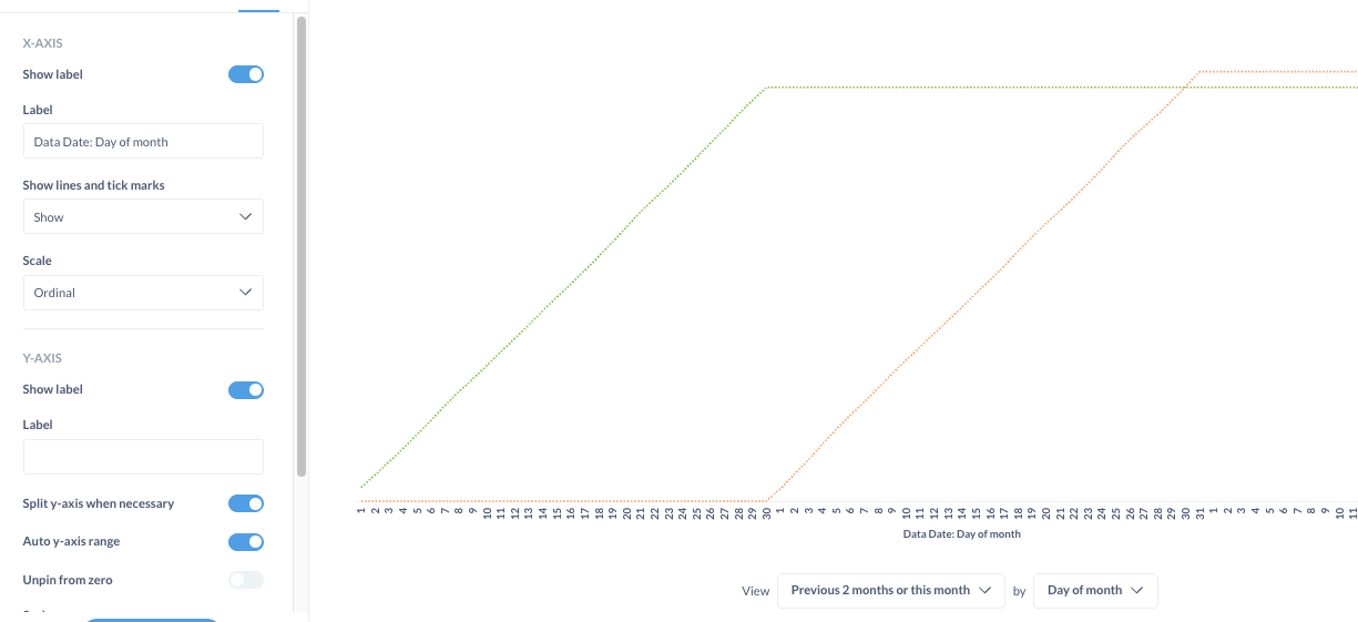However, after upgrading, the “Day of Month” bin aggregation is not working properly on Line graphs when display as Ordinal (i.e. 1,2,3… 31) .