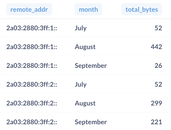 select remote_addr from cte where remote_addr << '2a03:2880:3ff::/48'