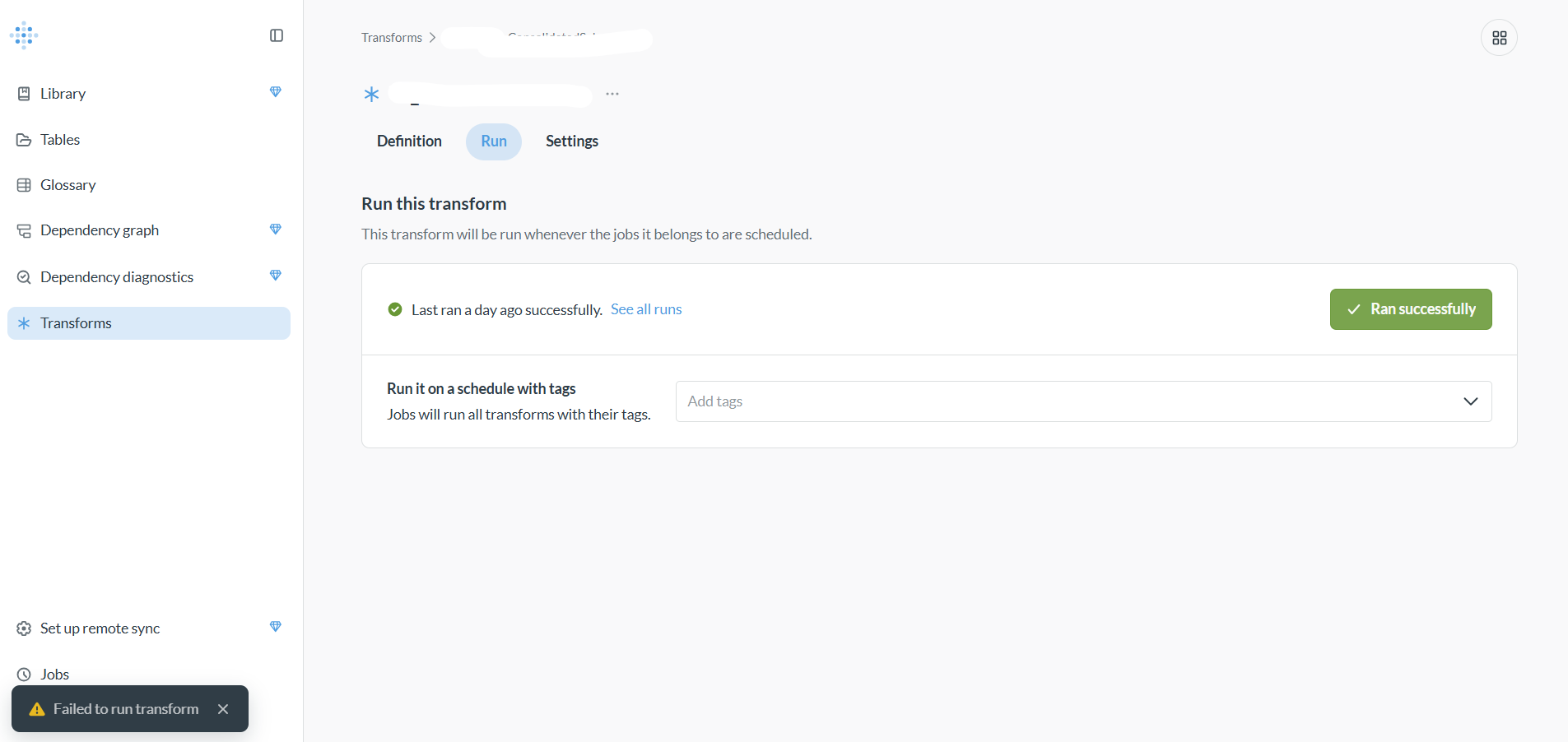 Version 60, I encounter error in transform in materializing into table. It gives me error upon running.