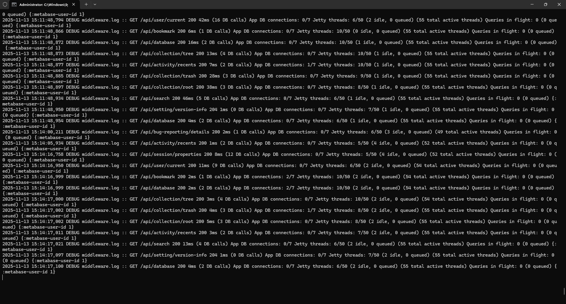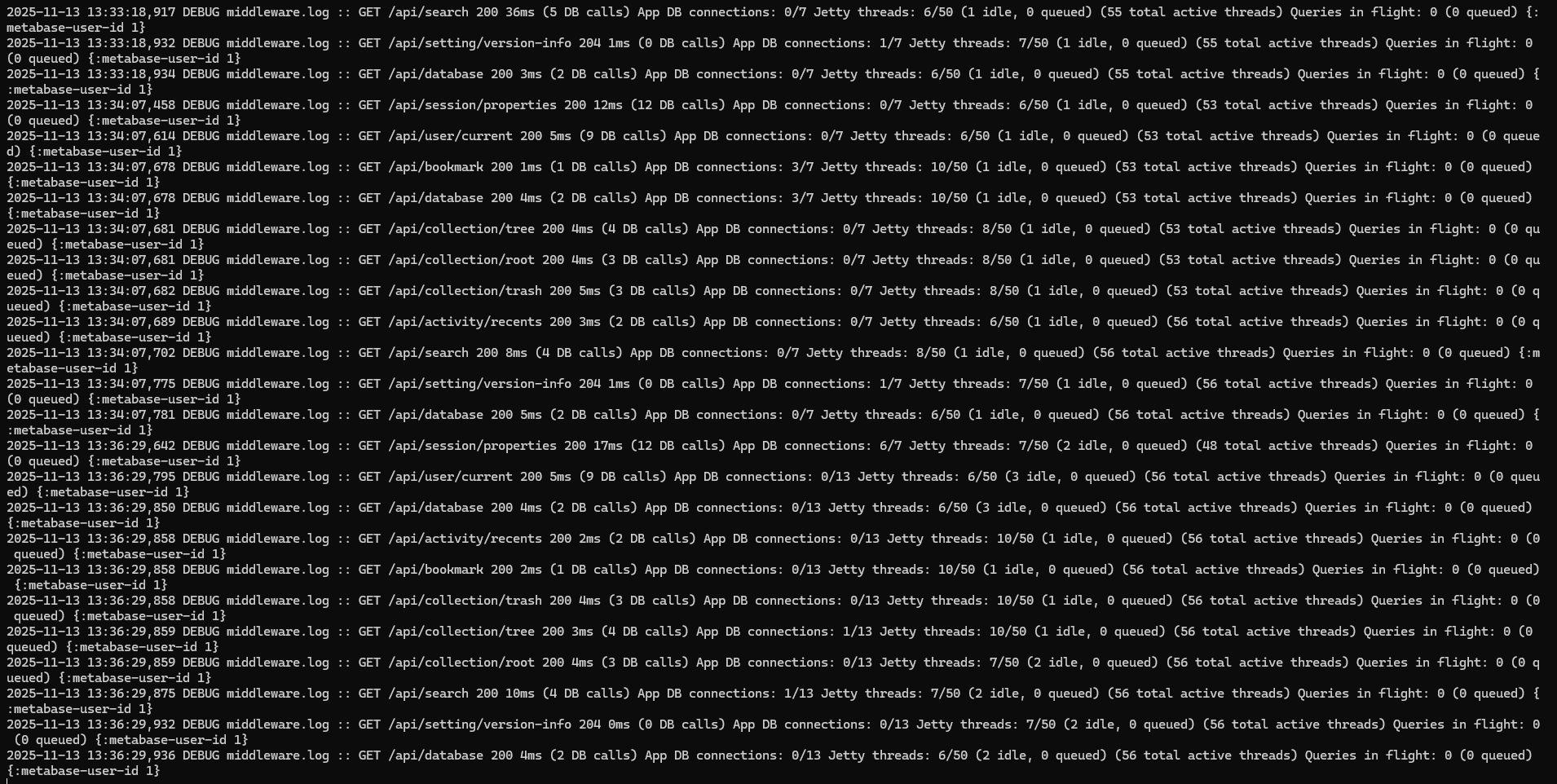I can’t find any error in backend and all the api return 200. what ‘s the problem? But when i restart and show 401 {:metabase-user-id nil}. Maybe is H2 has error so that lead this error?Thanks for your kindly help.