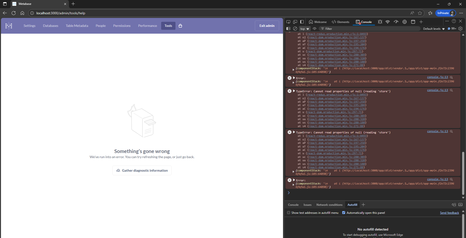 I've tried Chrome, Edge, and Firefox, but none of them work. Even enabling Incognito mode every time I launch the browser doesn't help. The console keeps showing the error: TypeError: can't access property “store”, u is null. Is there a better solution? Could it be an issue with how I downloaded the code or packaged it?