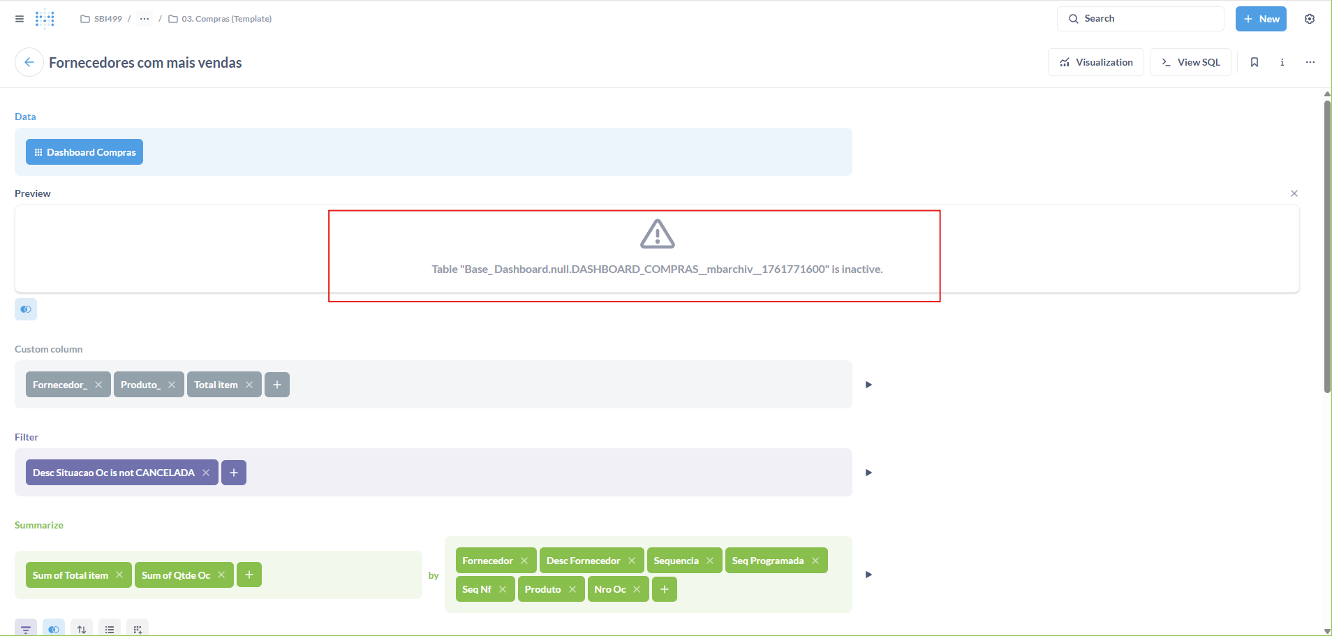 Metabase says a table that exists is inactive, altough it isn’t. This happens for queries that had already been saved.
