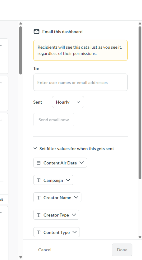 Impact: Admin users cannot manage report distribution for their team directly through the embedded interface; they must do it via the Metabase Native UI.As you can see, on the SDK, there is no input field to add emails for other people