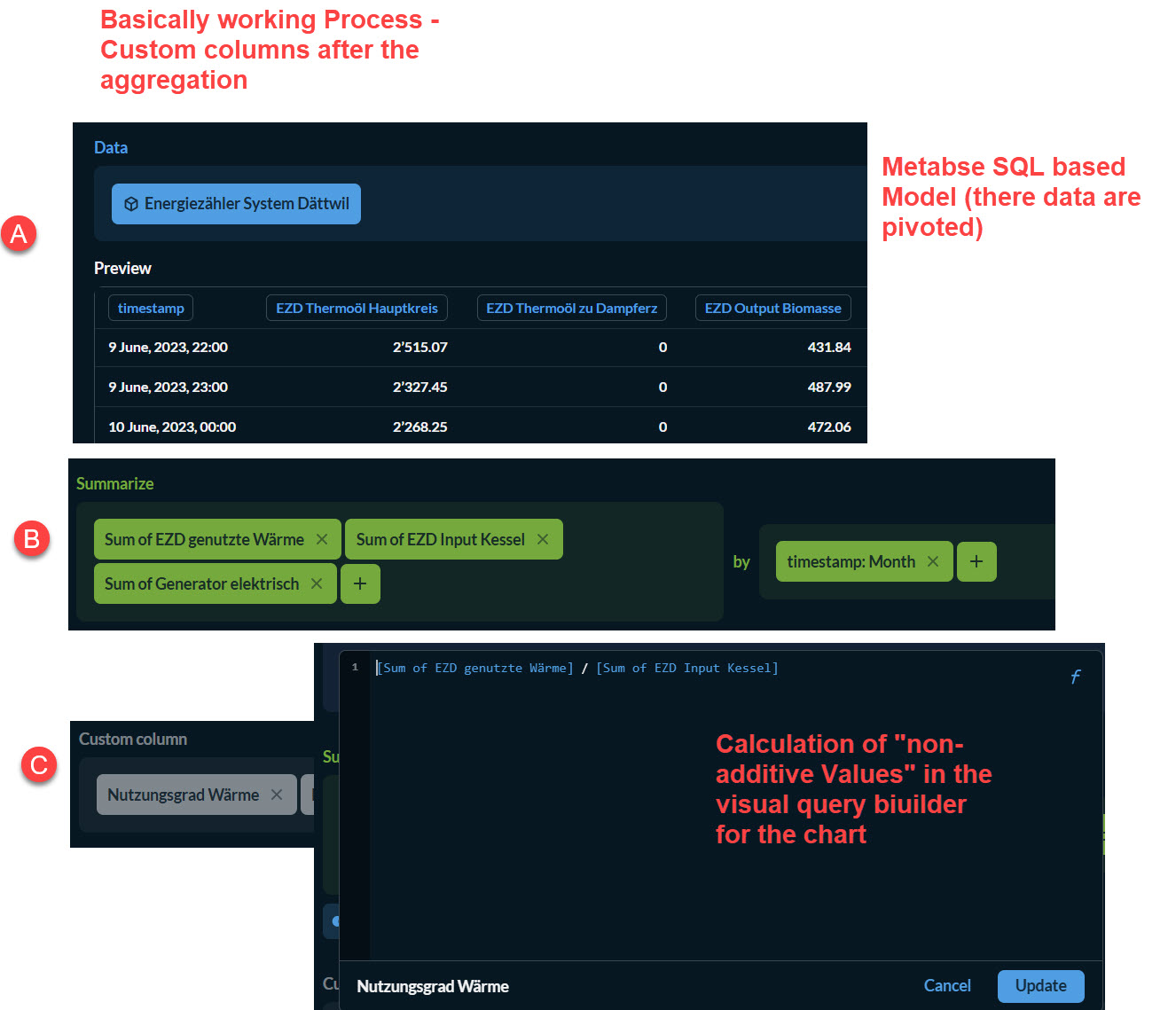 Because, the other option, to do the calculation in the SQL model after aggregation (hourly values to Daily / monthly...) would be quite complex and would loose the ability to switch the aggregation intervall in the chart as well.