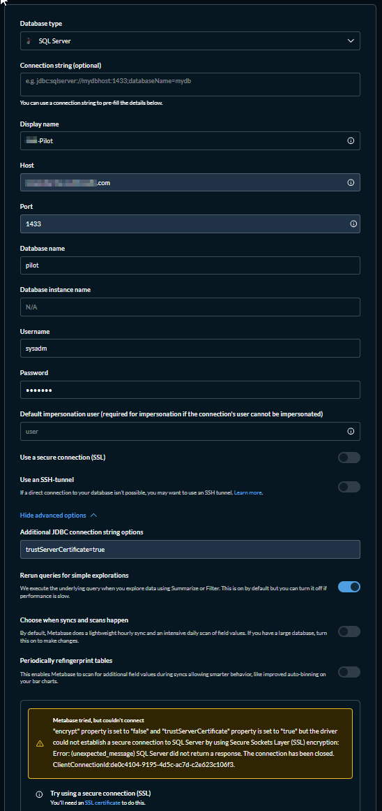 Metabase tried, but couldn't connect
