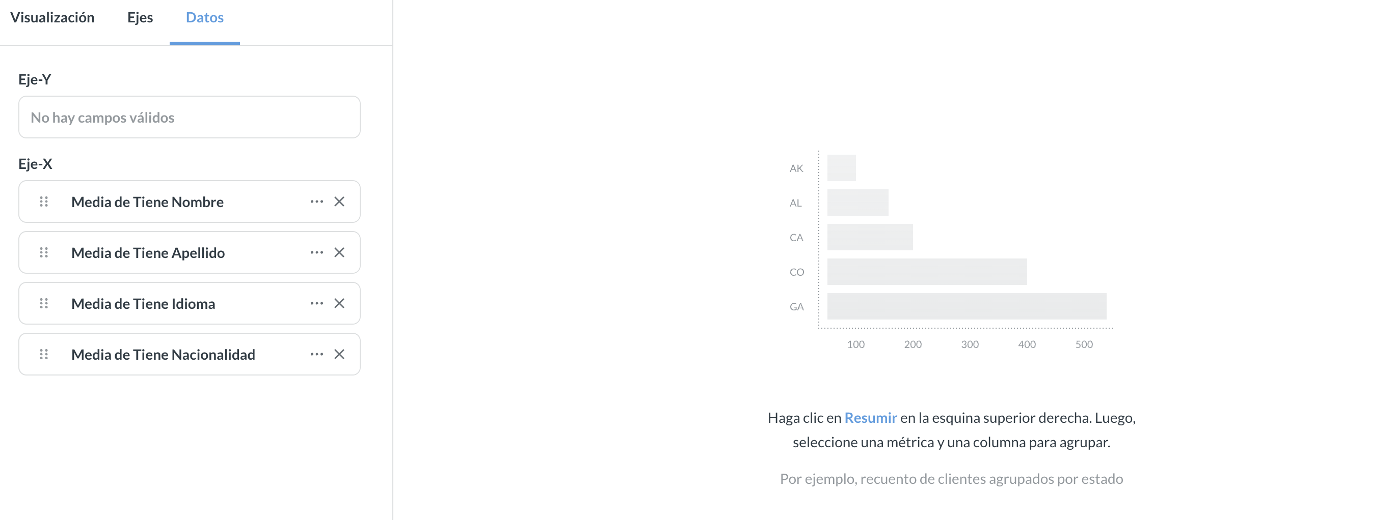 I’m new to Metabase and I’m stuck with what I suppose should be an easy chart. I’m trying to represent the completeness of a customer profile in a bar chart.