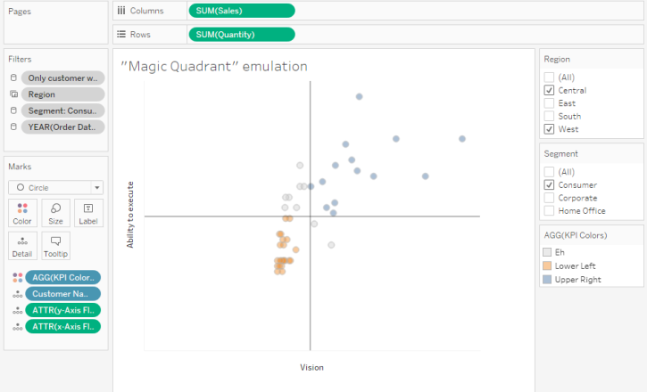 I've been asked by a customer to recreate the Tableau quadrant dataviz in Metabase. I realize that's not currently supported so I was wondering if anyone has any thoughts on a dataviz in metabase that could accomplish a similar goal.
