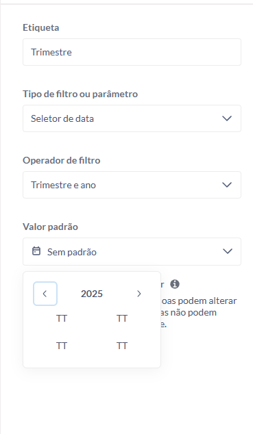 In previous versions, when using the date picker with the operator “Quarter and year”, the filter displayed the correct values as Q1, Q2, Q3, Q4.