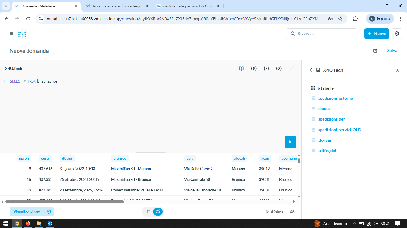 Does the Metabase database user have access to the table?