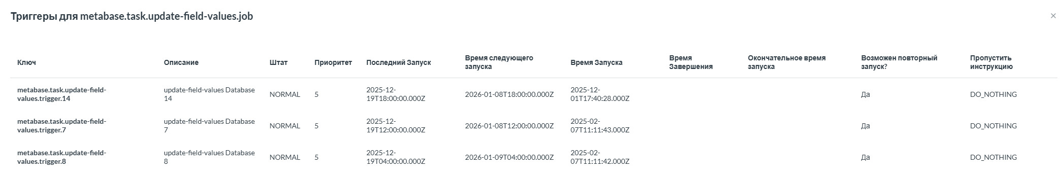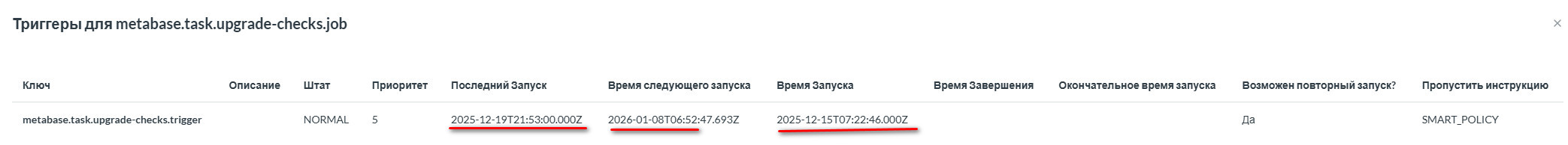 The time of the next launch is indicated correctly, but the tasks do not start at this time after 12/19/2025 (as seen in the screenshot).