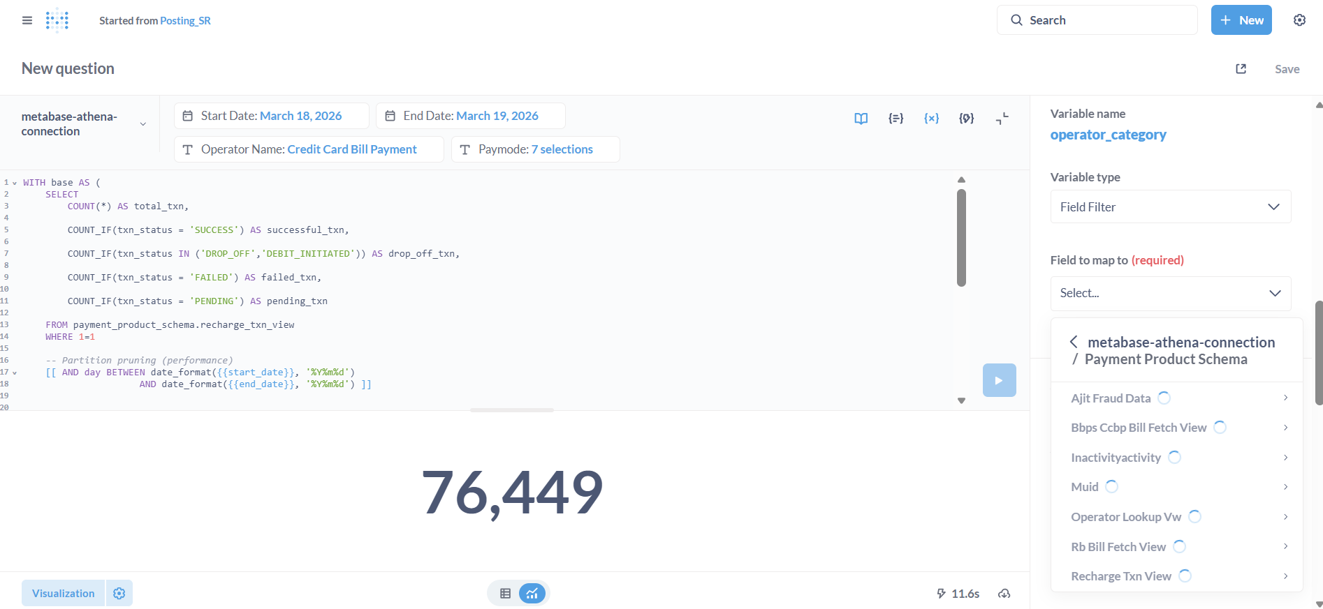Hi, I am trying to set variable to field filter and while selecting the schema from athena the view’s do not load. hence unable to select the view or field to connect the filter’s.